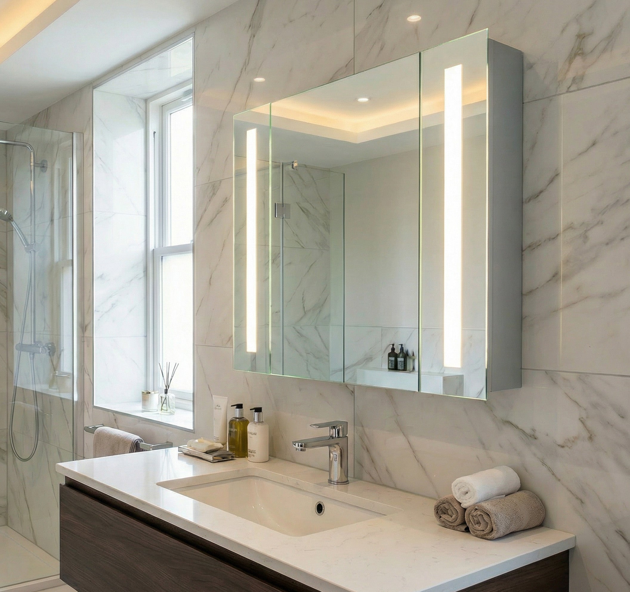 - Anti-mist mirror – stays clear after showers