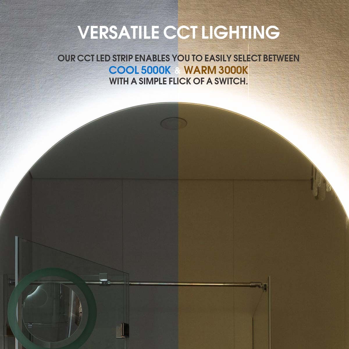 • Dual-Tone Lighting: Switch between warm (3000°K) and cool (5000°K) light to suit your routine.